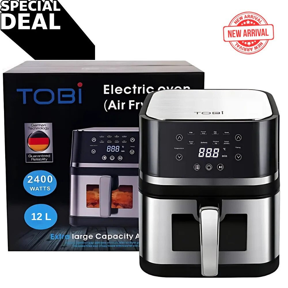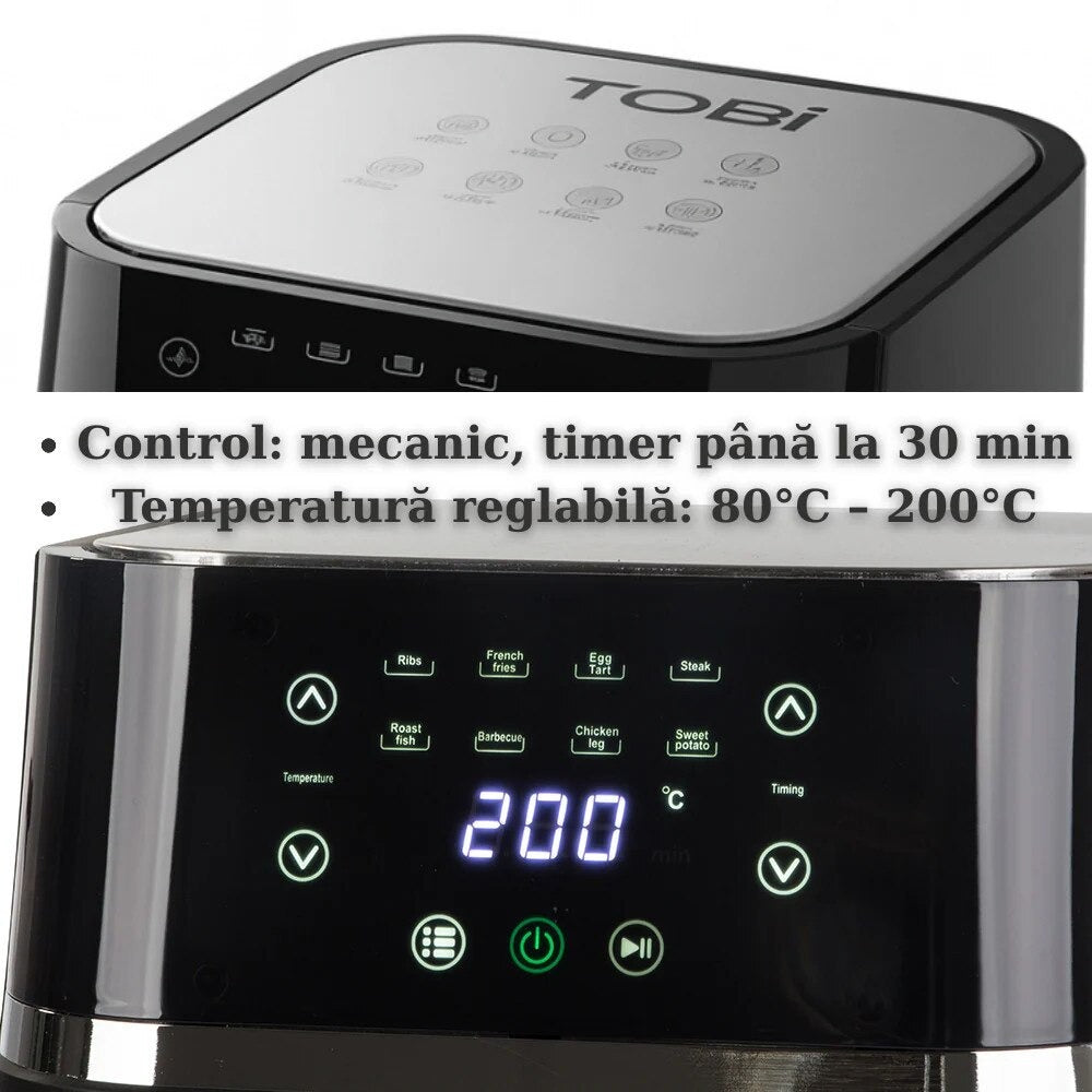 Friteuză cu aer cald TOBI 12L, 2400W – gătit rapid, sănătos și versatil pentru toată familia