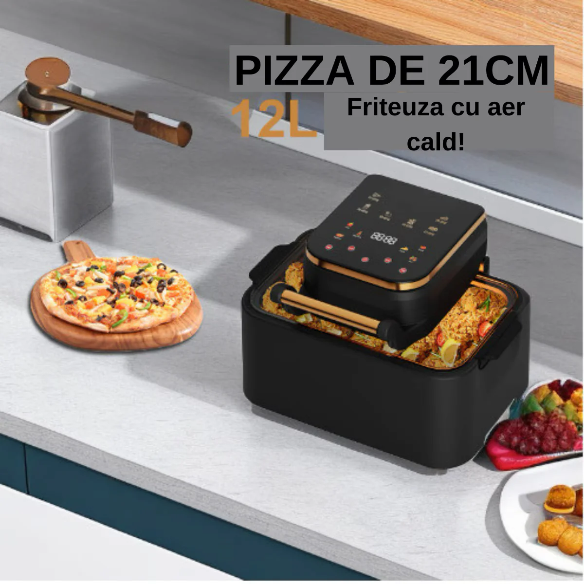 Friteuză profesională cu aer cald 3 în 1, digitală, fără ulei, AirFryer 1700W, capacitate 12L, control touch