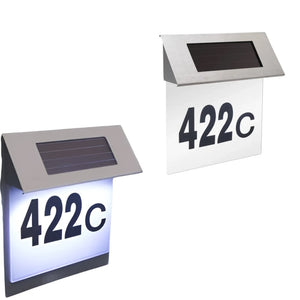 Număr de casă din inox cu iluminare LED și alimentare solară