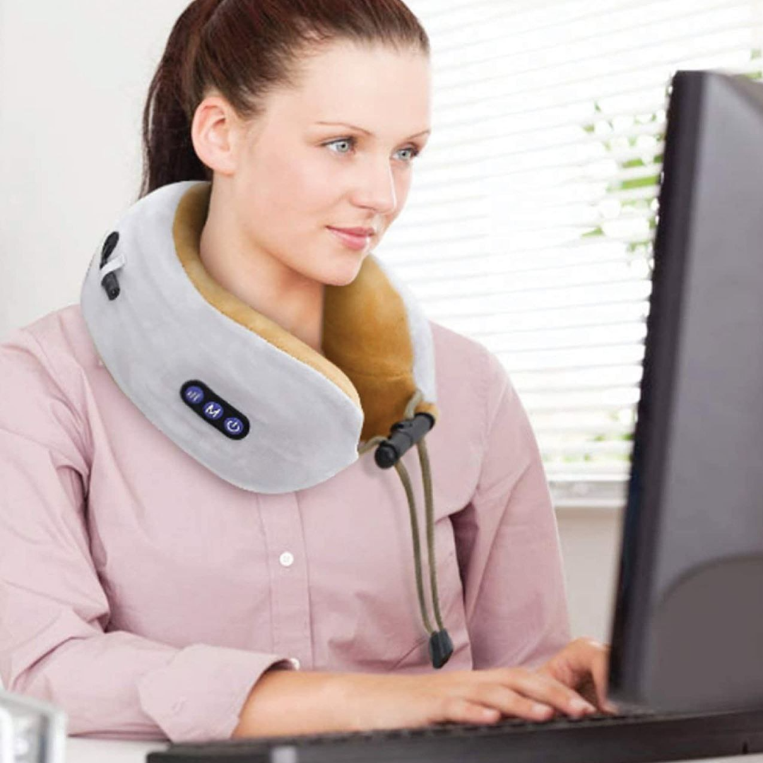 Pernă de Masaj pentru Gât cu Vibrații – Spumă cu Memorie, Relaxare Intensă și Suport Ergonomic