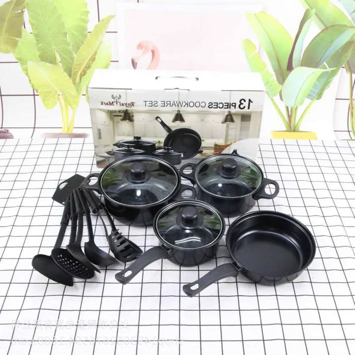 Setul de oale și ustensile pentru gătit, format din 13 piese, este alegerea ideală pentru orice bucătărie modernă. Conceput pentru a acoperi toate nevoile culinare zilnice, acest set include oale de diferite dimensiuni, tigăi și ustensile esențiale pentru gătit, oferind versatilitate, confort și eficiență în pregătirea mâncărurilor preferate.